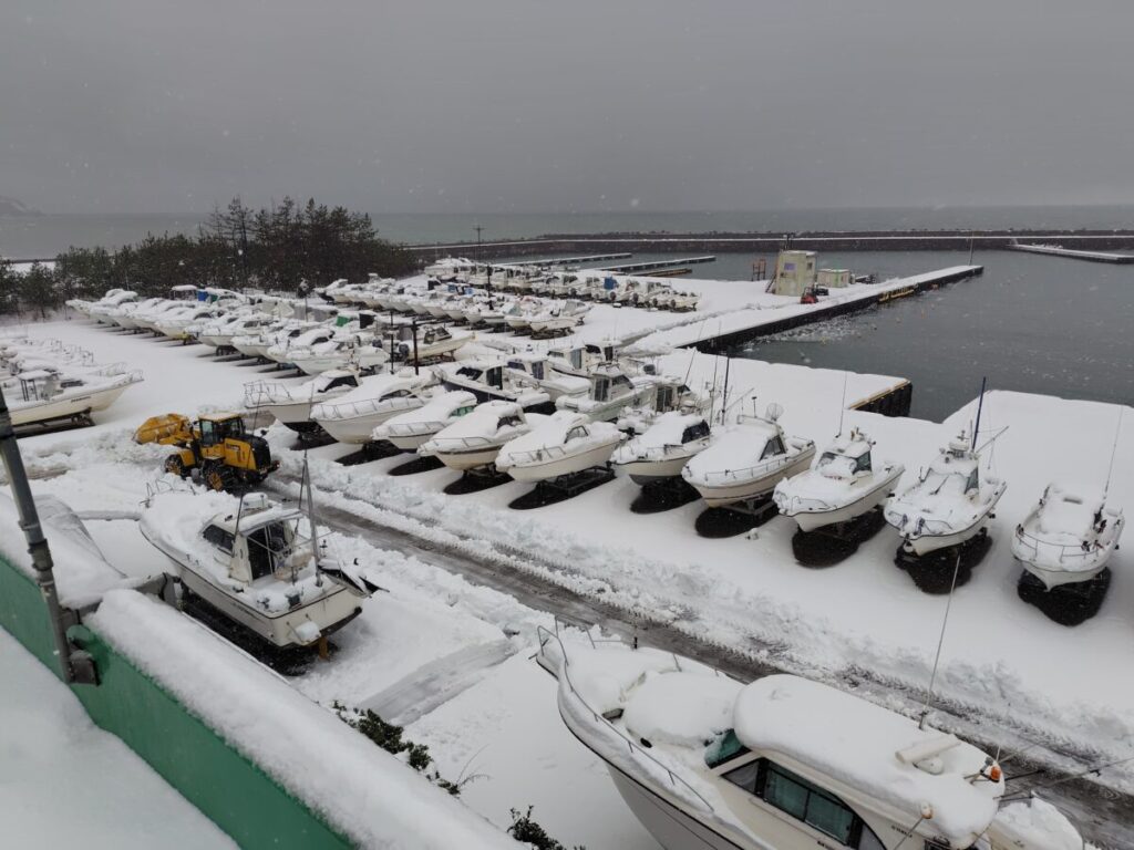 投稿日:2026.01.24 一昨日より降り続いた雪により、現在マリーナ内には40~50㎝程度の積雪があります。 現在急ピッチで駐車場を優先して除雪作業を行っており、ボートヤードや上下架施設の除雪も順次実施する予定です。 マリーナにいらっしゃる際には、事前に国道の通行状況等をご確認の上、気を付けてお越しくださいますようお願いいたします。 260124114513489 260124114522134 260124114539509 260124114550596